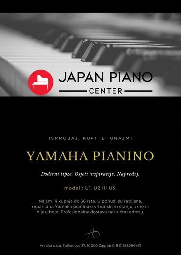 Ars Alta u ponudi ima reparirane Yamaha uspravne klavire, tj. pianina U1H, U2H i U3H. Svi su u mint stanju, spremni za upotrebu u domu, studiju ili školi.