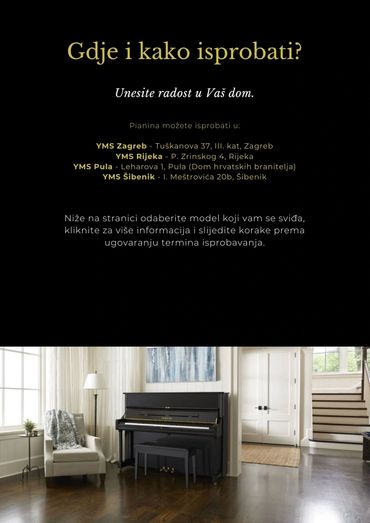 U ponudi su vrhunska pianina koja možete isprobati u našim lokacijama u Zagrebu, Rijeci, Puli i Šibeniku.
